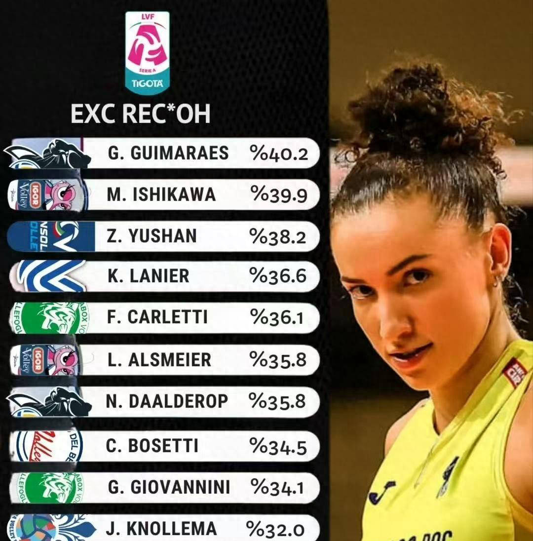 庄宇珊跻身意甲一传榜前三,展现合格主攻实力;朱婷迎战意大利杯关键战