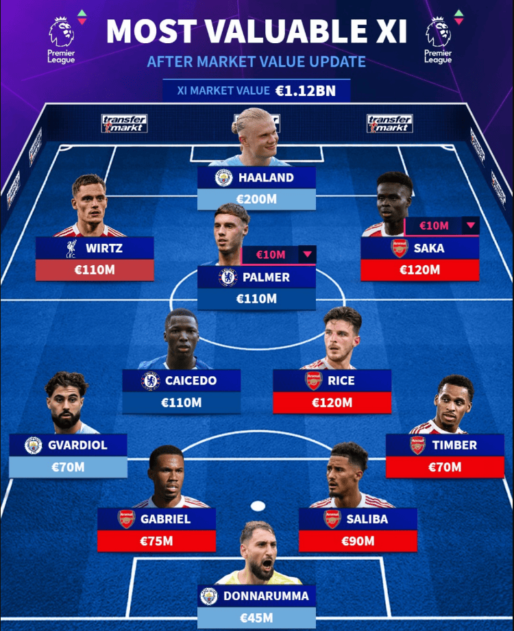 英超身价更新:索博亿欧TOP10红军占5 最贵阵容枪手占5